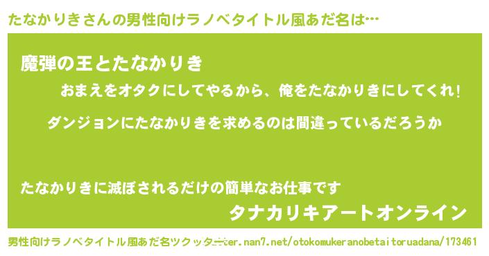 | 女子向けラノベタイトル風あだ名 | 『たなかりきの卵を拾いまして』 |