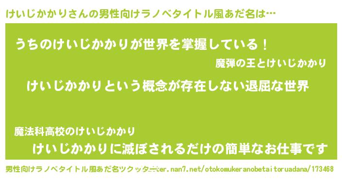 | 胡散臭い通販商品みたいなあだ名 | 『来世でも幸せになれる水素水…その名も「けいじかかり」』 |