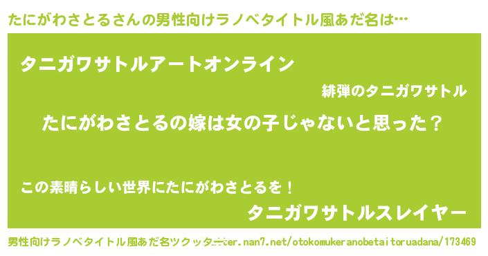 | 胡散臭い通販商品みたいなあだ名 | 『全米が絶賛したサプリメント…その名も「たにがわさとる」』 |