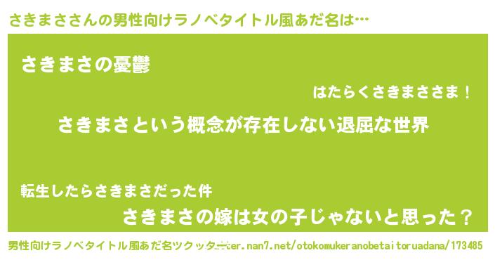 | 胡散臭い通販商品みたいなあだ名 | 『来世でも幸せになれる健康食品…その名も「さきまさ」』 |