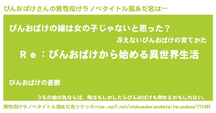 | 女子向けラノベタイトル風あだ名 | 『闇のぴんおばけ』『ぴんおばけの婚約者』 |