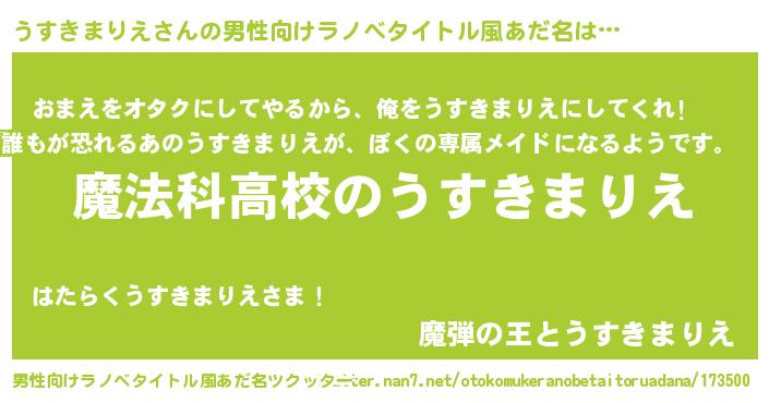| 女子向けラノベタイトル風あだ名 | 『うすきまりえアンティーク』 |