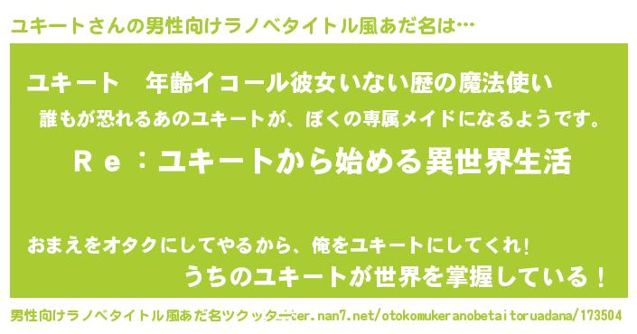 | ファンタジー風あだ名 | 『ゼユキトゥ』『ユリユキヴァット』 |