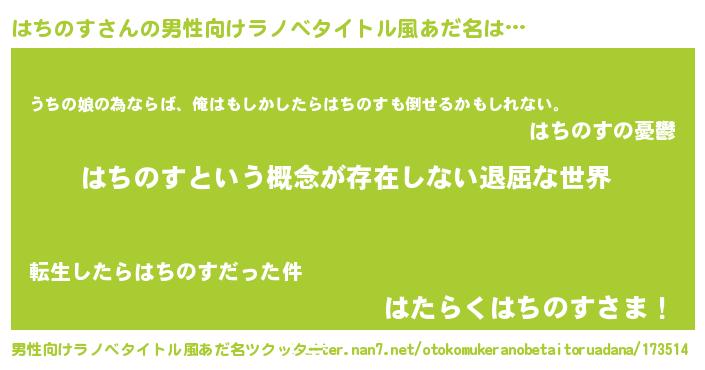| ヒーロー風カッコイイあだ名 | 『ネオハチノス』『ウルトラはちのすマン』 |