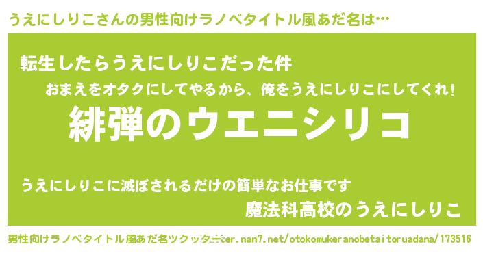 | 胡散臭い通販商品みたいなあだ名 | 『ガンによく効く高麗人参…その名も「うえにしりこ」』 |