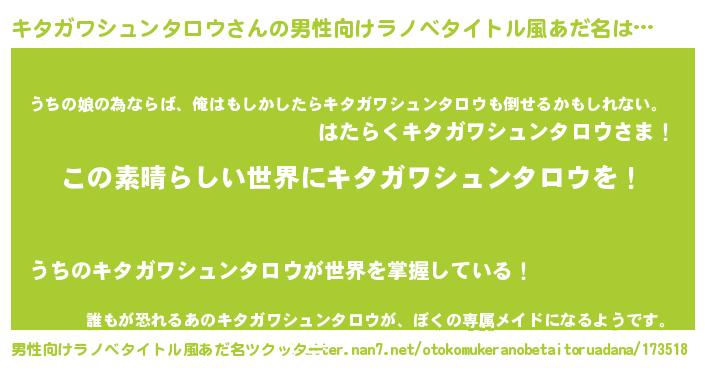 | 胡散臭い通販商品みたいなあだ名 | 『あなたにだけ特別に提供する限定10本のレアな日本酒…その名も「キタガワシュンタロウ」』 |