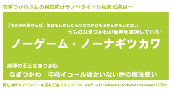 なぎつかわさんの男性向けラノベタイトル風あだ名をツクッター!