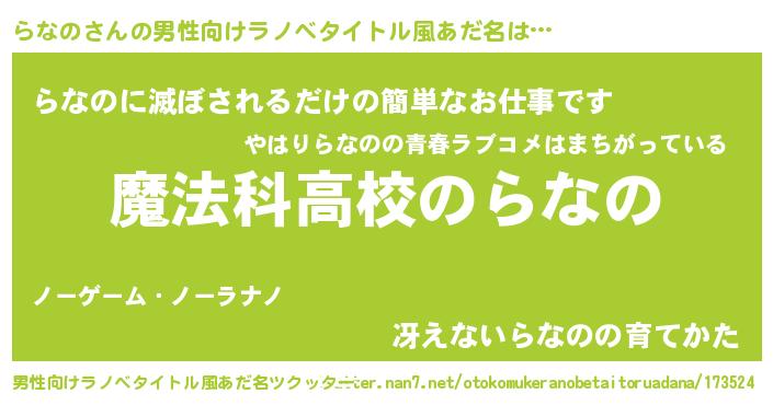 | 女子向けラノベタイトル風あだ名 | 『らなのアンティーク』『らなの恋絵巻』 |