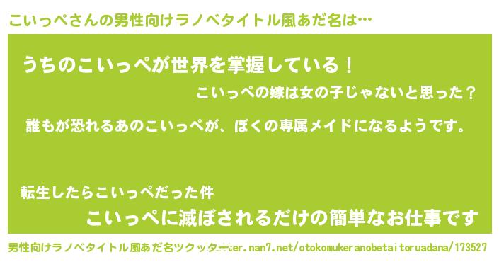 | 胡散臭い通販商品みたいなあだ名 | 『来世でも幸せになれる招き猫…その名も「こいっぺ」』 |