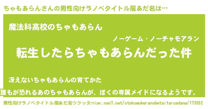 | 胡散臭い通販商品みたいなあだ名 | 『テレビで話題の高麗人参…その名も「ちゃもあらん」』 |
