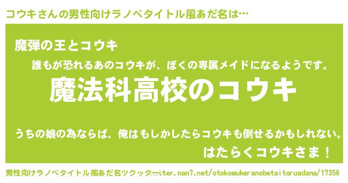 | 女子向けラノベタイトル風あだ名 | 『コウキなんてお断りですっ。』 |