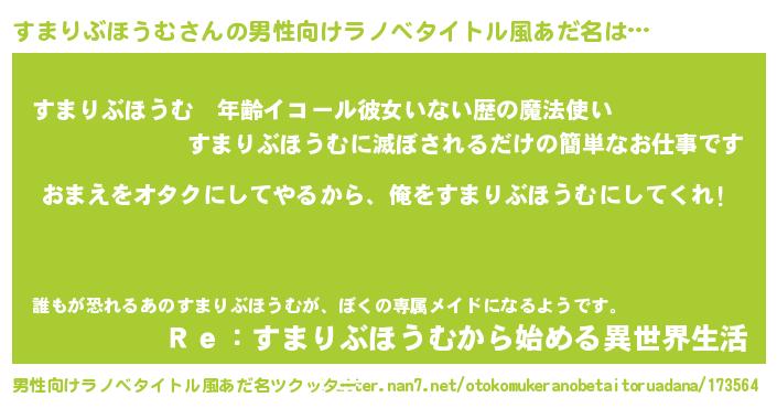 | ヘコむあだ名 | 『すまりぶほうむ(爆)』『酢こんぶ』 |