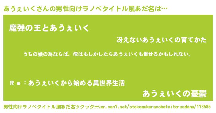 | 女子向けラノベタイトル風あだ名 | 『あうぇいくの婚約者』 |
