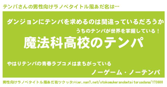 | 女子向けラノベタイトル風あだ名 | 『テンパなんてお断りですっ。』 |