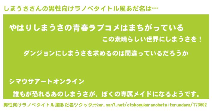 | 胡散臭い通販商品みたいなあだ名 | 『伝統あるペンダント…その名も「しまうさ」』 |