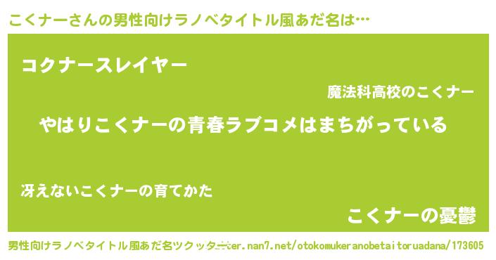 | 意味不明あだ名 | 『こくナーフォーエバー』『自称こくナー』 |