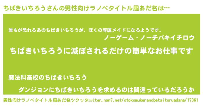 | 意味不明あだ名 | 『永久保存ちばきいちろう』 |