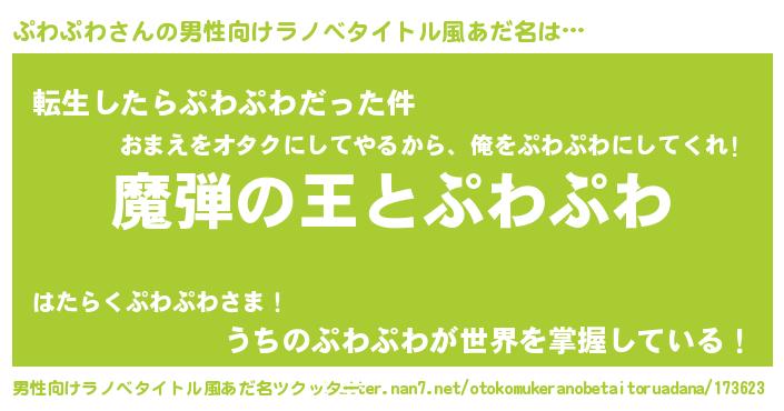 | 胡散臭い通販商品みたいなあだ名 | 『世界中を虜にした世界で10本だけ現存している希少なブランデー…その名も「ぷわぷわ」』 |
