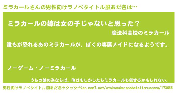 | 意味不明あだ名 | 『永久保存ミラカール』『自称ミラカール』 |