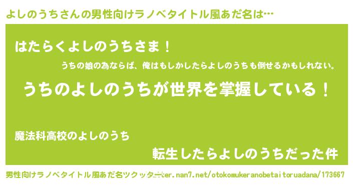| 胡散臭い通販商品みたいなあだ名 | 『運命の人と巡り会える高級そうな絵画…その名も「よしのうち」』 |