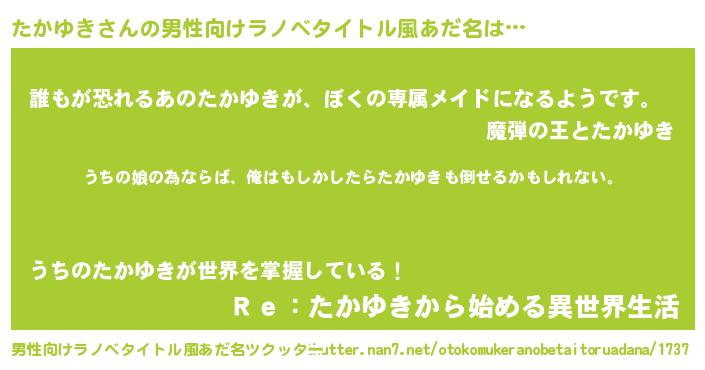 | 女子向けラノベタイトル風あだ名 | 『たかゆきの婚約者』『闇のたかゆき』 |