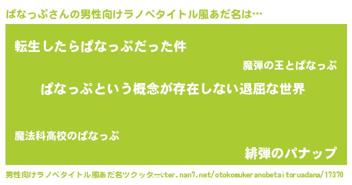 | 意味不明あだ名 | 『永久保存ぱなっぷ』『自称ぱなっぷ』 |