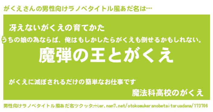 | 女子向けラノベタイトル風あだ名 | 『がくえが死なない童話 林檎のがくえの診療簿』 |