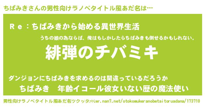 | ヘコむあだ名 | 『つくし』『ちばを』『ちばっふぃ~』 |