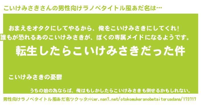 | ヒーロー風カッコイイあだ名 | 『慈愛の使者こいけみさき』 |