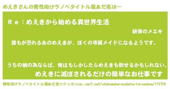 | 意味不明あだ名 | 『永久保存めえき』『自称めえき』 |