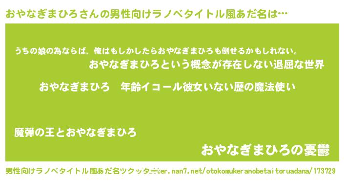 | 女子向けラノベタイトル風あだ名 | 『おやなぎまひろの玉の輿計画!』 |