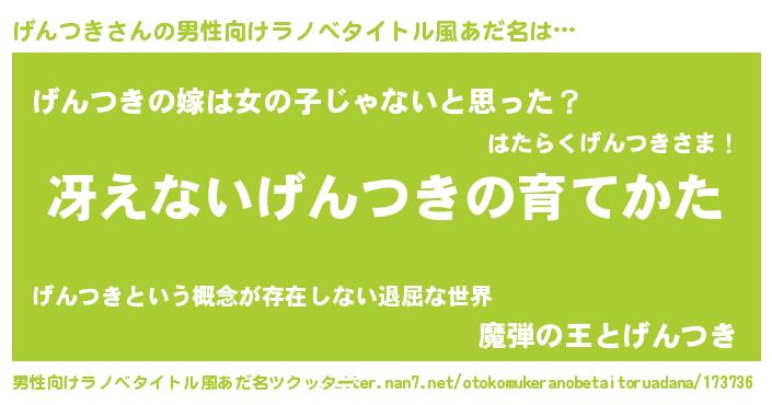 | 女子向けラノベタイトル風あだ名 | 『シンデレラげんつき家の靴箱館』 |
