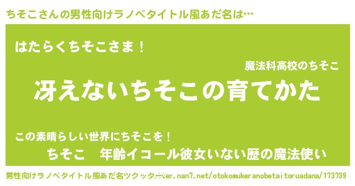 | 意味不明あだ名 | 『なめこ科ちそこ属』『自称ちそこ』 |