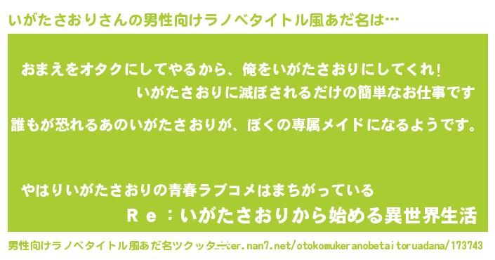 | 女子向けラノベタイトル風あだ名 | 『異世界でカフェいがたさおりを開店しました。』 |