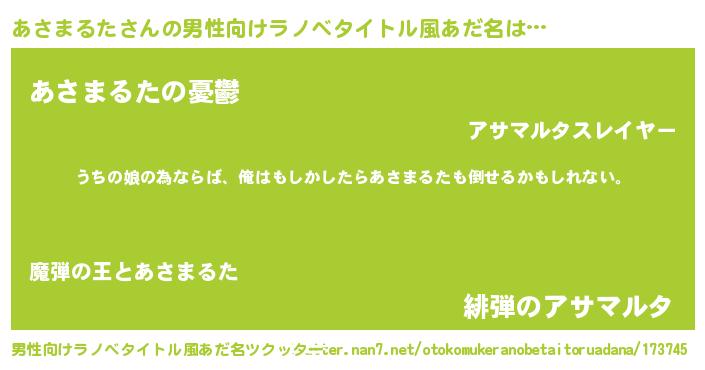 | 女子向けラノベタイトル風あだ名 | 『あさまるた伯爵の花嫁』 |