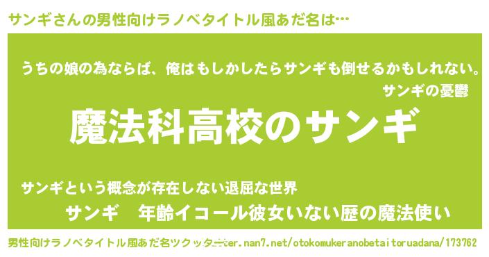 | ファンタジー風あだ名 | 『ゼサントゥ』『エターナルサンギー』 |
