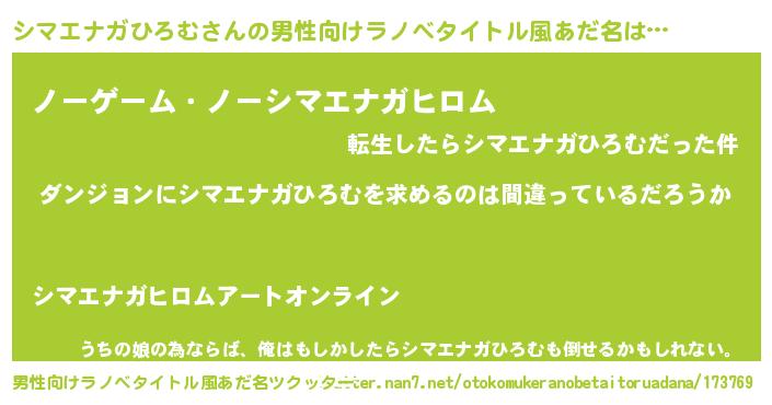 | 胡散臭い通販商品みたいなあだ名 | 『信頼と実績のペンダント…その名も「シマエナガひろむ」』 |