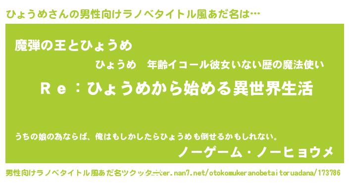 | 女子向けラノベタイトル風あだ名 | 『ひょうめストレイドッグス』 |