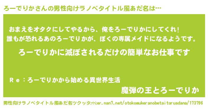 | ヘコむあだ名 | 『ろーでりか(遠い目)』『ろーお』 |