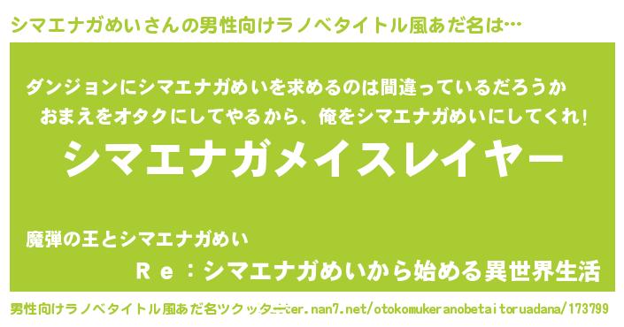 | ポケモン風あだ名 | 『シマキング』『ヒシマエナガメイ』 |