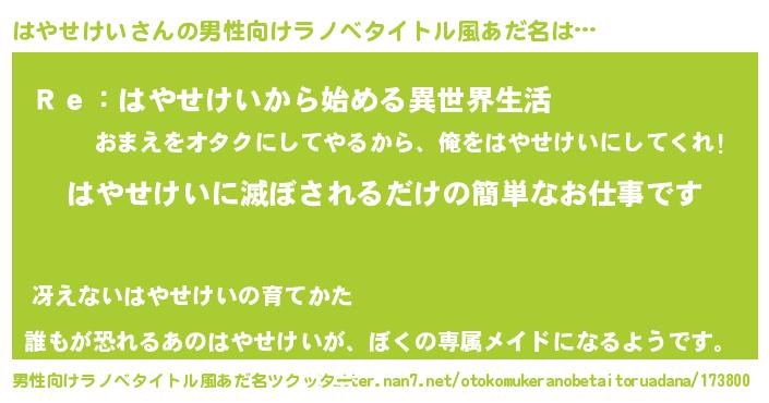 | 胡散臭い通販商品みたいなあだ名 | 『芸能人もオススメするアガリクス…その名も「はやせけい」』 |