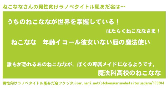| 料理風あだ名 | 『ねこななとほうれんそうの和風グラタン』 |