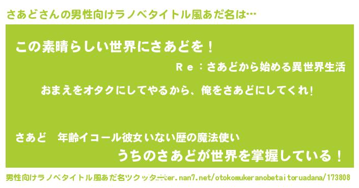 | 女子向けラノベタイトル風あだ名 | 『さあど夫妻のなれそめ』『闇のさあど』 |