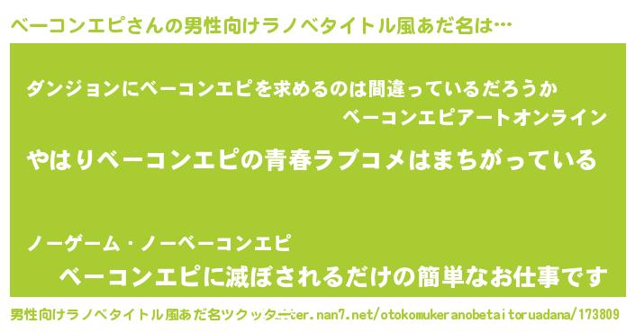 | 女子向けラノベタイトル風あだ名 | 『ベーコンエピの雑貨屋さん』 |