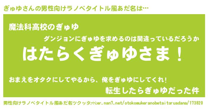 | 胡散臭い通販商品みたいなあだ名 | 『ガンによく効く冬虫夏草…その名も「ぎゅゆ」』 |