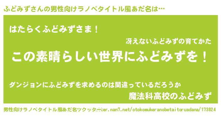 | 女子向けラノベタイトル風あだ名 | 『悪役ふどみずに転生したようですが、知った事ではありません』 |