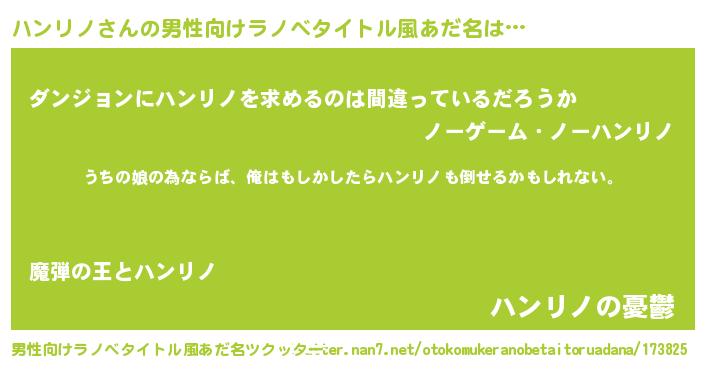 | 女子向けラノベタイトル風あだ名 | 『ハンリノの婚約者』『ハンリノ恋絵巻』 |