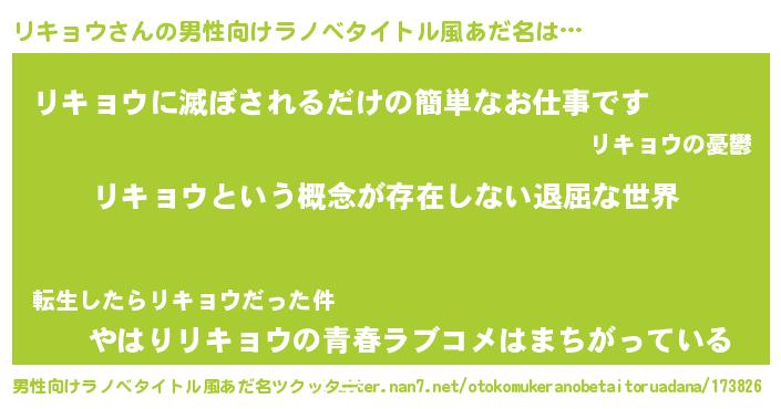 | ヘコむあだ名 | 『リキョウ(笑)』『レバニラ』 |