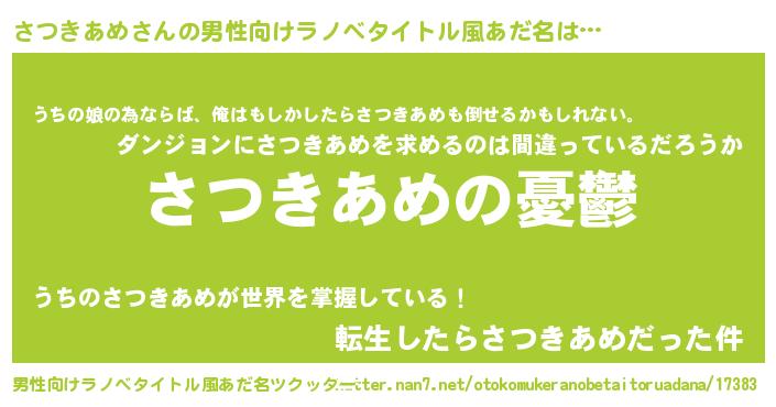 | ファンタジー風あだ名 | 『サツフェル』『エターナルサツキアメー』 |