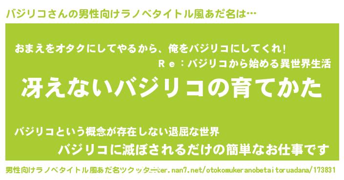| ヘコむあだ名 | 『バジリコ(震え声)』『バジ太郎』 |